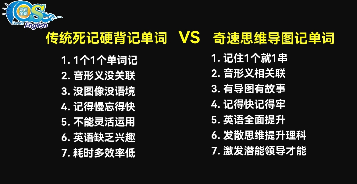 奇速英语思维导图记单词,作为奇速英语的核心研发成果,是蔡章兵教授深耕英语30年、潜心打磨的高效学习法,彻底打破了传统“孤立记英语单词”的局限,为学子们开辟出一条科学高效的记词捷径。不同于传统死记硬背的模式,这种创新方法借鉴汉字“偏旁+部首”的逻辑,将有共同词根、词缀的中高考核心单词归类在同一张思维导图中,再用生动有趣的故事串联记忆,让零散的单词形成有逻辑的知识网络。